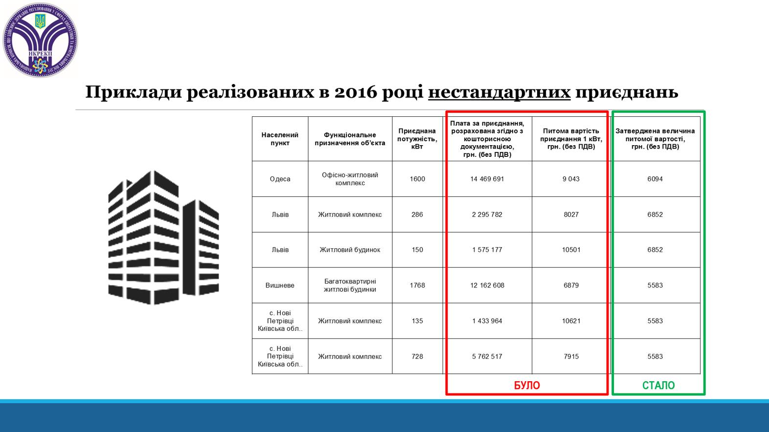 "С удивлением прочитал новости о якобы "коллапсе" строительного рынка в связи с решением Комиссии об установлении удельных ставок нестандартного присоединения от 160кВт. Решили привести примеры по реальным объектам по разным регионам, таким образом опровергнуть информацию о повышении, а наоборот показать примеры снижения стоимости", - написал Вовк на своей странице в Facebook. - "Комиссия выступает: а) против сохранения существующих непрозрачных подходов к определению стоимости нестандартных присоединений б) против присоединения новых бытовых потребителей за счет существующих потребителей".