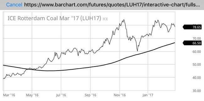 Така ціна іде у тариф ТЕС, а цей тариф іде у ціну електроенергії. Середня ціна за 12 місяців буде нижча від останньої ціни у Роттердамі, якщо ціна на біржі росте. Бо дешевше вугілля перших 6 місяців періоду усереднюється із дорожчим вугіллям останніх 6 місяців.