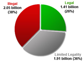 Общее количество проституток колеблется в очень больших рамках: так, издание Havocscope называет общую цифру в минимум 13,8 млн, а французское Fondation Scelles – от 40 до 42 млн.
