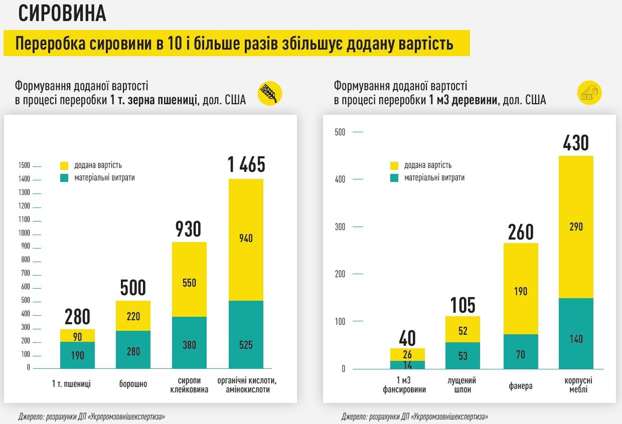 Переробка сировини створює значно більше доданої вартості. Що таке додана вартість? Це первинні доходи суспільства, які для нас мають три складові. Частина з них – це оплата праці робітників, які виготовили цей продукт. Друге – це прибуток підприємця, який володіє бізнесом. І третє – це податки, які сплачені в бюджет з цього виробничого процесу.