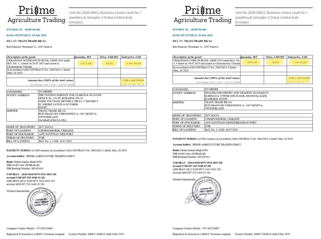 Було поставлено 10 373 тонни сої за ціною $430 за тонну на загальну суму понад $4,46 млн, а також 8 998,5 тонни кукурудзи за ціною $260 за тонну на суму понад $2,33 млн.