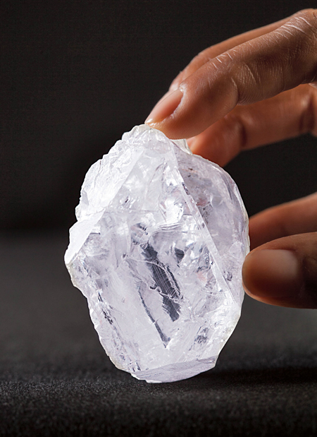 Алмаз размером с теннисный мяч был найден в ноябре прошлого года на месторождении Karowe в Ботсване, принадлежащем канадской Lucara Diamond Corp. Название камня переводится с языка тсвана как "Наш свет".