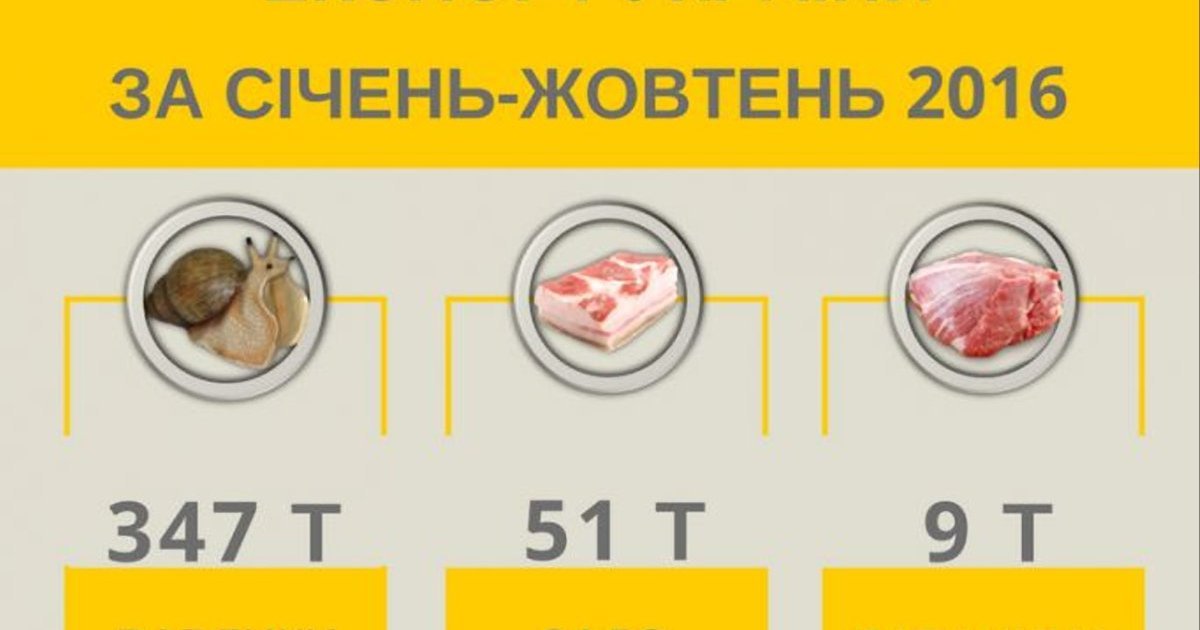 В 2016 году Украин поставляла улиток в Румынию и Литву, куда продукция попадала охлажденной, обрабатывалась и снова отправляется на экспорт, но уже по цене в среднем $6,5 за кг из Румынии и $5,5/кг из Литвы.