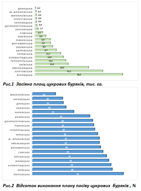 "Подавляющее большинство областей уже засеяла более 50% своих площадей: Полтавская и Киевская области уже пересекли отметку в 80%, Винницкая, Полтавская, Хмельницкая области в общем засеяли 100 тыс. га. сахарной свеклы, что составляет почти треть посевных площадей прошлого года", - комментирует аналитик сырьевых рынков Василий Долинский.
