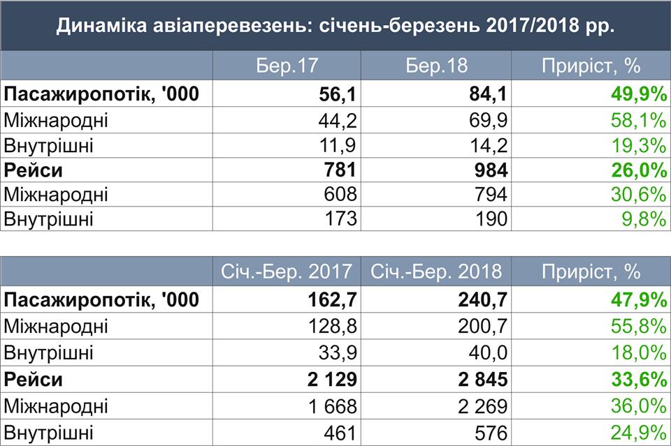 Пассажиропоток аэропорта "Львов" в марте 2018 года вырос на 49,9% по сравнению с мартом прошлого года и составил 81,4 тыс. человек.