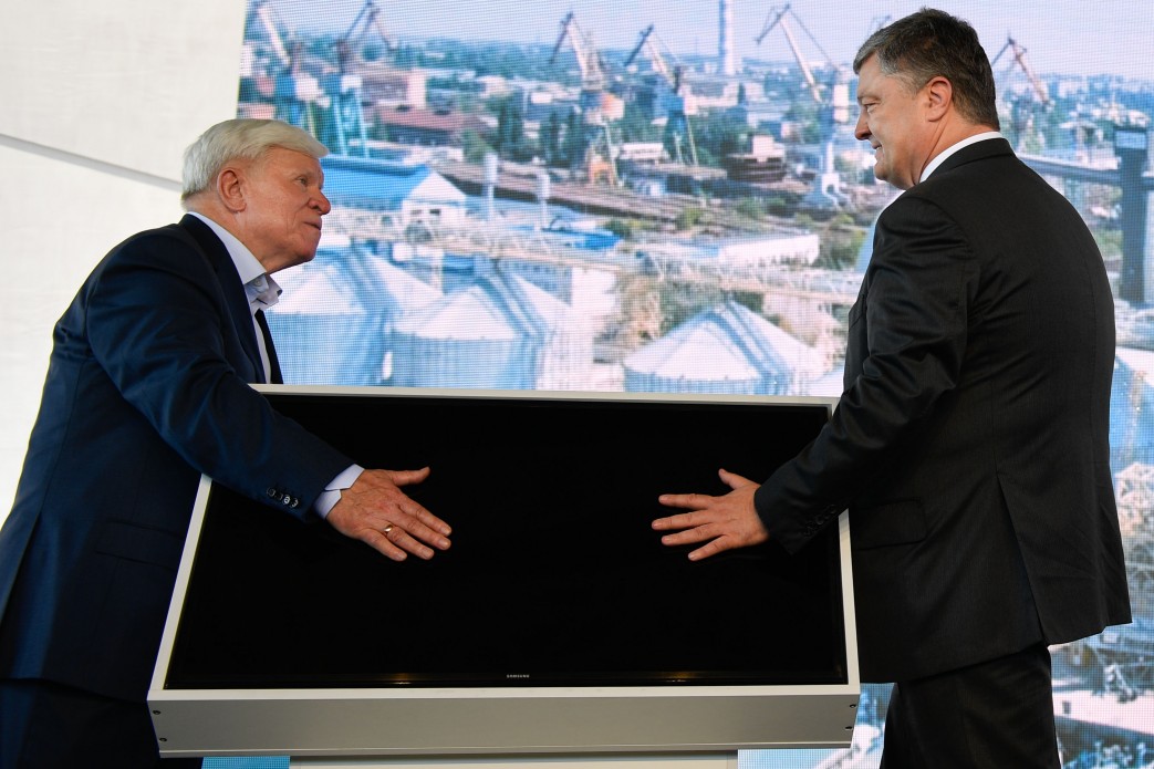 Президент Петр Порошенко во время рабочей поездки в Николаевскую область на предприятии "Нибулон" принял участие в открытии нового элеваторного комплекса, спуске на воду многоцелевого морского буксира Т3500 и в закладке строительства двух новых кораблей.