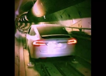 По тоннелю проехала модель Tesla X с приспособлением, которое позволяет электрокару ездить по рельсам.