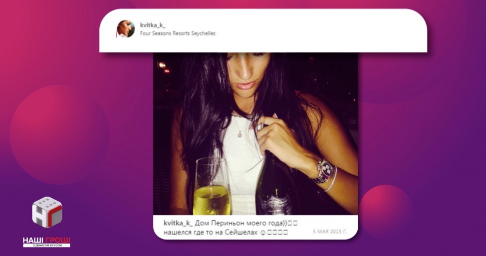 В конце 2014 года она запостила фотографии с описанием: "Маврикий". На фото оказался пятизвездочный RoyalPalmMauritius. Недельный тур на двоих здесь стоит 200 тысяч гривен.