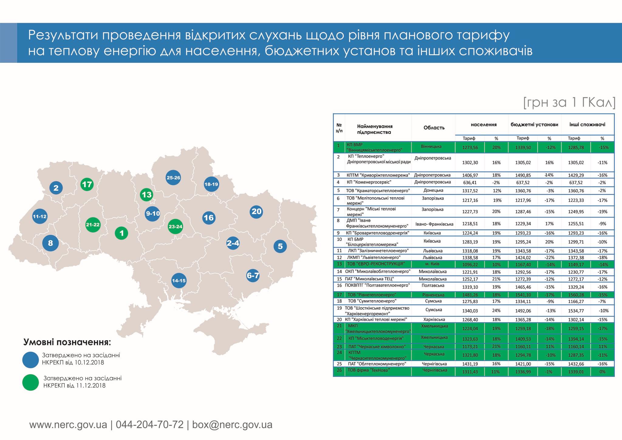 Национальная комиссия, осуществляющая регулирование в сфере энергетики и коммунальных услуг (НКРЭКУ), приняла решение о повышении тарифов на тепло для всех 26 запланированных поставщиков.