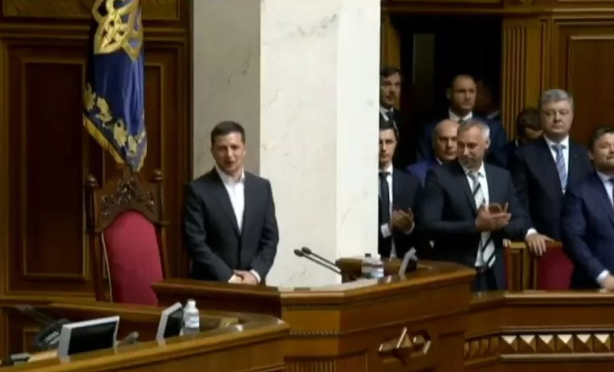 На заседании парламента присутствует президент Владимир Зеленский, премьер Владимир Гройсман, члены Кабинета министров Украины, бывшие президенты, в том числе Петр Порошенко, иностранные гости.