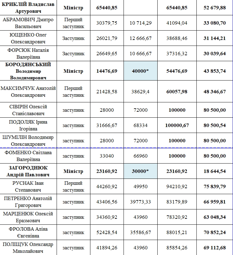 "Справедливым будет привязать зарплаты министров, заместителей министров и других чиновников к средней зарплате по стране через коэффициент премьер-министр и министры – 5 средних зарплат; заместители министров – 4,5. Максимальная премия – не более, чем один оклад", – отмечал на соответствующем заседании премьер-министр Алексей Гончарук.