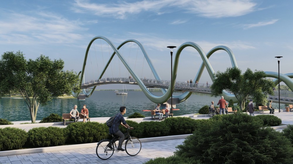 По словам мэра, ширина моста составит 4 метра, а длина – 164 метра. Он будет иметь три пролета. Конструкция сооружения будет опираться на 4 опоры, две из которых построят в проливе.