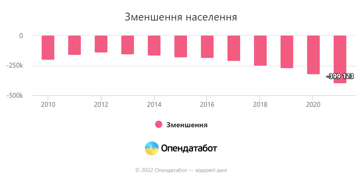 Загалом через перевищення показника смертності над народжуваністю в країні з 2010 року стало на понад 2,6 млн громадян менше.
