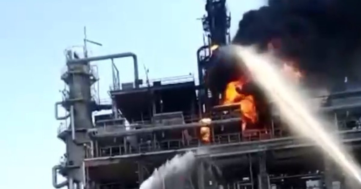Первый удар пришелся по технологическому оборудованию установки по переработки нефти ЭЛОУ-АВТ-2,5(I), говорится в сообщении на сайте завода. В результате разгерметизации аппаратов воздушного охлаждения произошел выброс углеводородного газа, сопровождаемый взрывом и распространением огня на рядом находящееся оборудование установки.