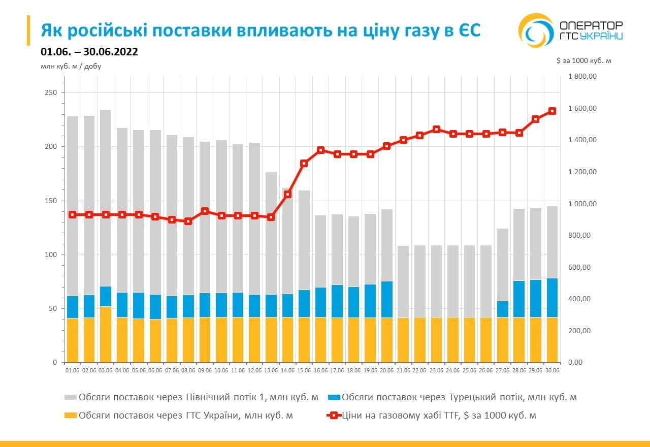Оператор ГТС вказує, що разом з обмеженням транзиту газопроводом "Північний потік", це призводить до "осушення" газового ринку ЄС та зростання цін.