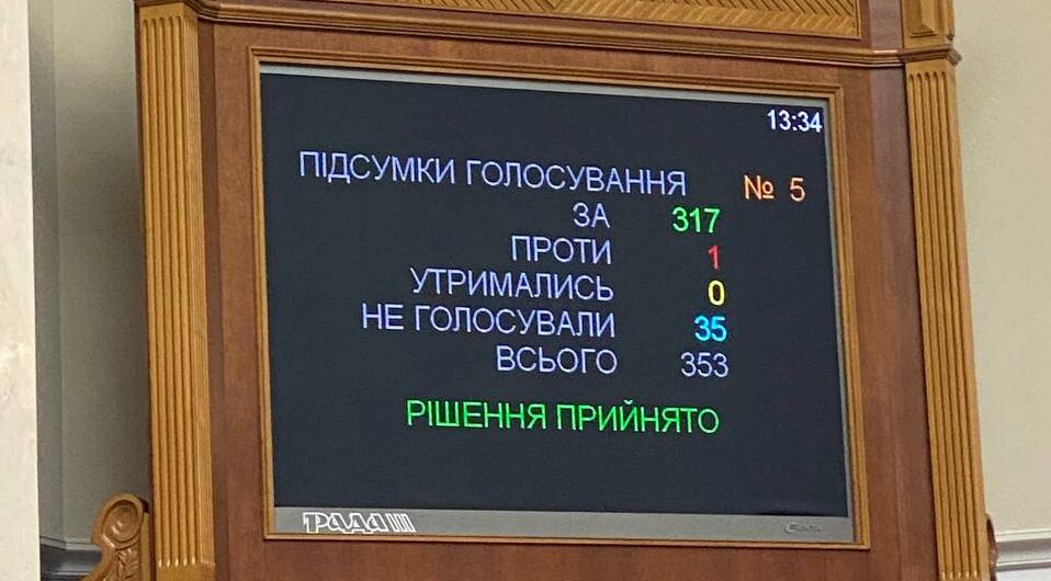 Як повідомив народний депутат Ярослав Железняк, відповідне рішення було підтримано 317 голосами.
