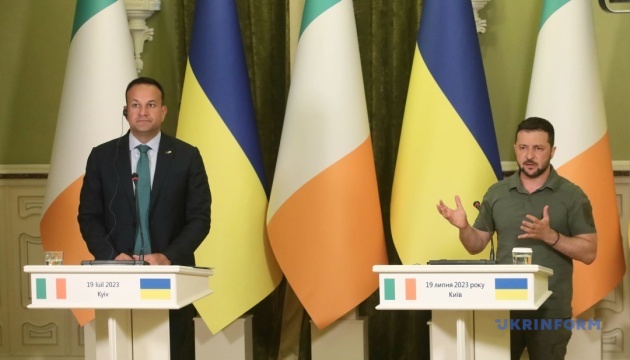 "Ірландія прихистила 86 тис. українців. Надала їм допомогу з житлом, надала допомогу з фінансами, доступом до освіти і медицини. Це дуже важливо", – заявив президент України Володимир Зеленський під час спільної з прем'єр-міністром Ірландії Лео Варадкаром пресконференції у Києві, передає Укрінформ.
