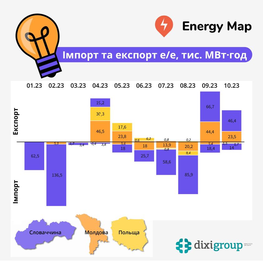 Експорт електроенергії в жовтні впав на 37%. ІНФОГРАФІКА