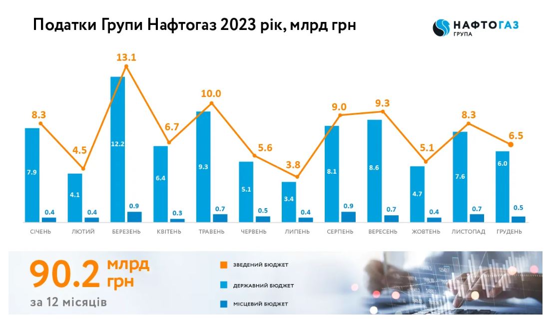 У 2023 році підприємства групи "Нафтогаз" сплатили до державного бюджету 83,4 млрд грн податків, ще 6,8 млрд грн перераховано до місцевих бюджетів.