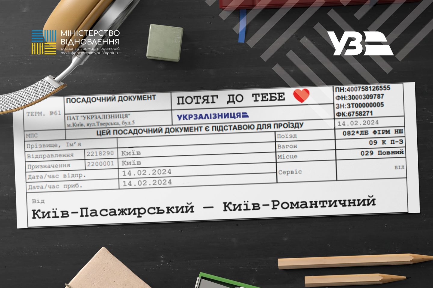 До Дня закоханих та Дня єднання "Укрзалізниця" запускає у Києві та Львові романтичний експрес "Потяг до тебе"