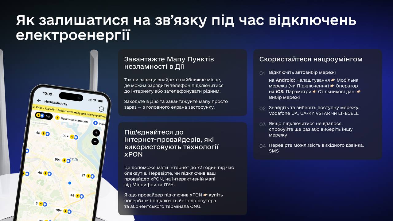 У Мінцифри розповіли, як залишитися на зв’язку під час відключень електроенергії