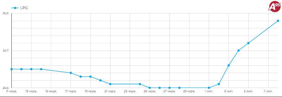 Із 1 по 8 липня середня вартість скрапленого газу зросла на 18 копійок – до 26,78 грн за літр.