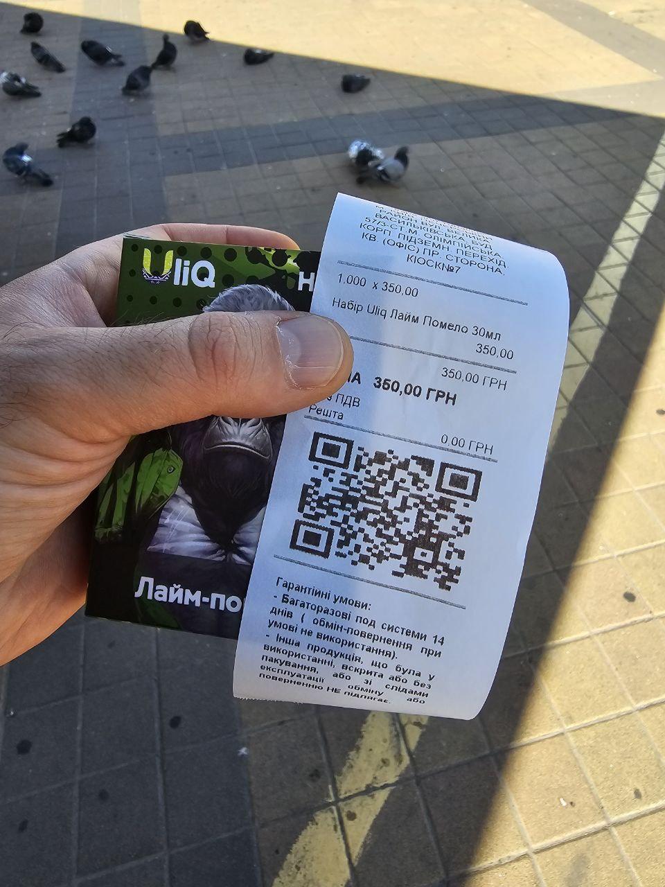 При вході на одну з центральних станцій Києва можна придбати такий самий набір, як і в RiverMall. Тут навіть видають чек і буває в наявності нікотин із гліцерином в одному флаконі. Але, за словами продавця, такий товар уже розкупили, тому журналіст придбав стандартний набір для вейпу з трьох складових.