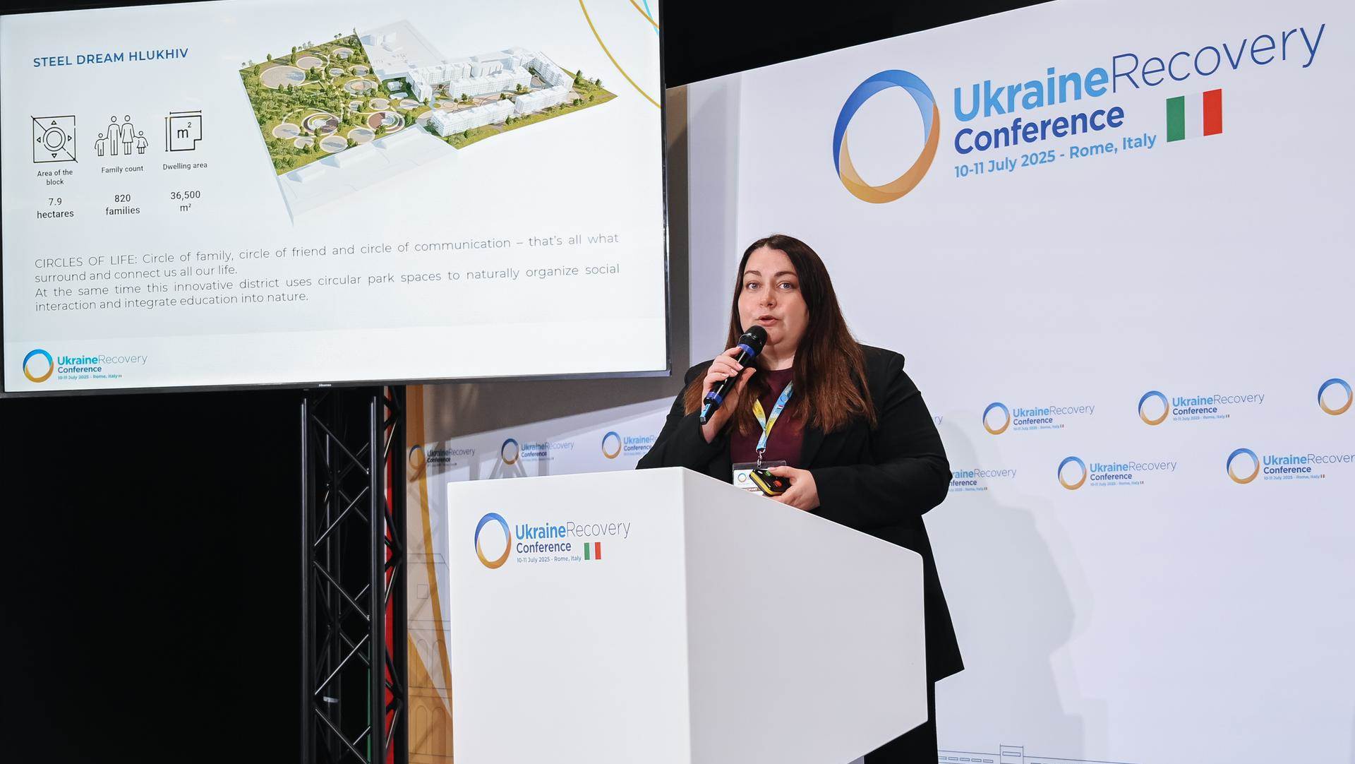 Компанія "Метінвест" представила чотири унікальні концепції відновлених кварталів "Сталева мрія" – для Бахмута, Маріуполя, Тростянця та Глухова. Їх презентували на міжнародній конференції Ukraine Recovery Conference 2025 у Римі.