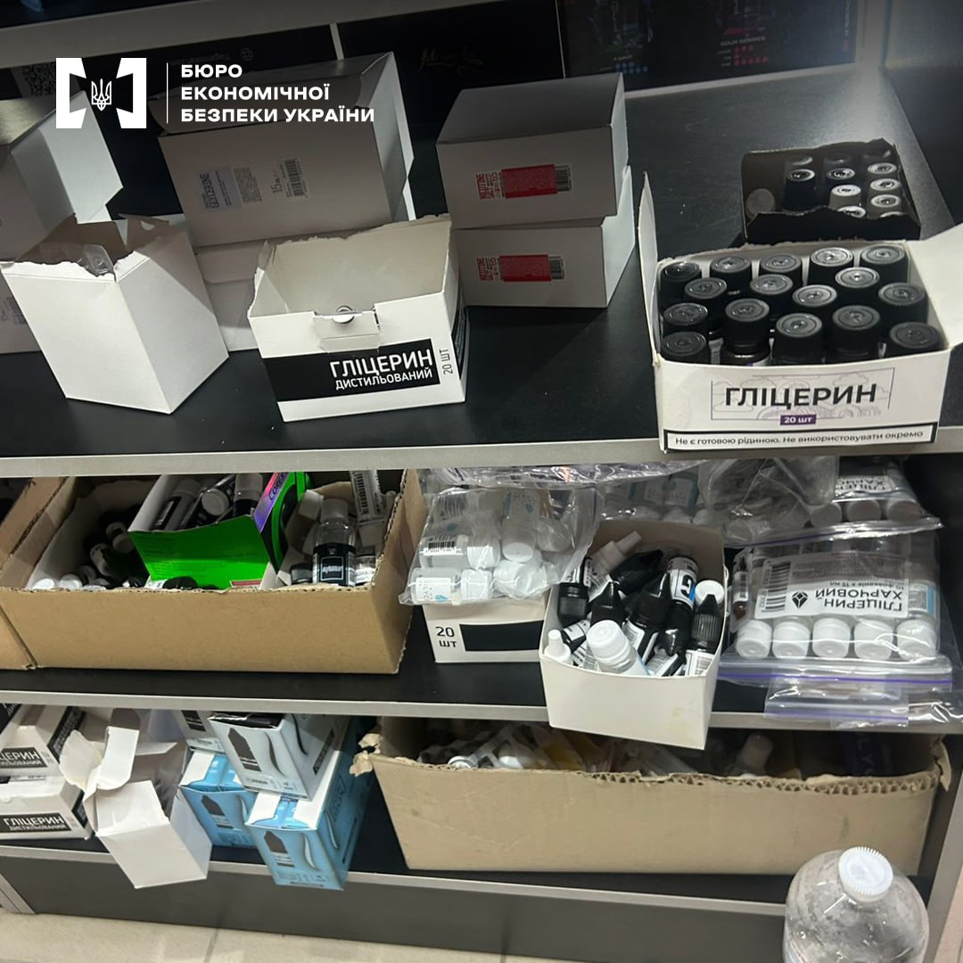 У ході слідчих дій правоохоронці вилучили майже 30 тис. ємностей із рідинами для електронних сигарет, понад 1,2 тис. POD-систем, понад 3,5 тис. картриджів із рідиною для вейпів, тютюн для кальяну. Також вилучено мобільні та POS-термінали, чорнові записи та комп'ютерну техніку.