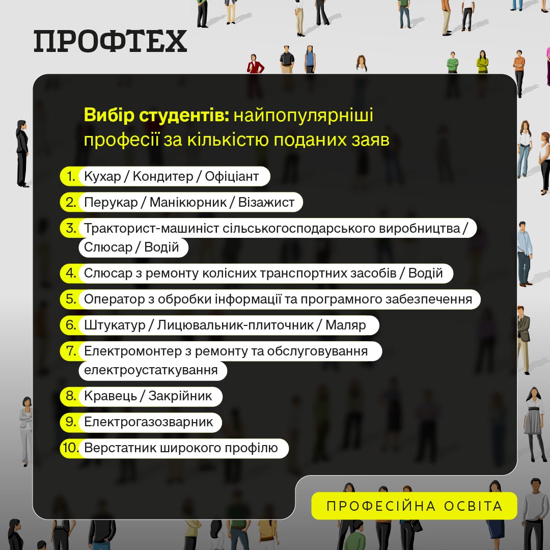 Міносвіти назвало найпопулярніші професії за кількістю поданих заяв у профтехи. ПЕРЕЛІК