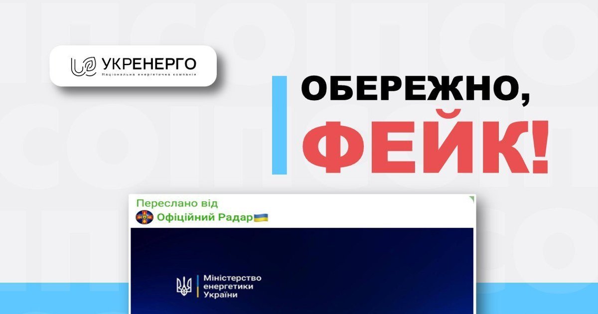 "Такі повідомлення – це чергова маніпуляція на чутливій темі. Будь ласка, не переходьте за посиланнями, вказаними у таких дописах. Дані, які вимагають при реєстрації в Telegram-каналах, що поширюють фейки, можуть бути використані шахраями у своїх недоброчесних цілях", – закликали в "Укренерго".