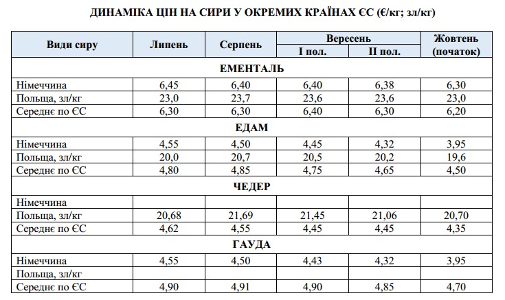 "Учасники вітчизняного ринку молока та молокопродуктів повинні врахувати наявні світові тренди. Насамперед необхідно відреагувати на сигнали ринку ЄС, де з кінця серпня активно знижуються ціни на масло, сухе молоко, а з початку жовтня – і сири. Перераховані молокопродукти – це основні позиції українського експорту, частка яких у загальних обсягах експорту молокопродуктів у вересні сягнула 80%", – звертає увагу Тулуш.