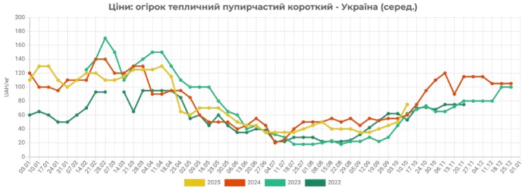 За даними щоденного моніторингу, відвантаження з місцевих тепличних господарств зменшилися приблизно у 5 разів тиждень до тижня. Через дефіцит виробники здебільшого реалізують огірок дрібним оптом.