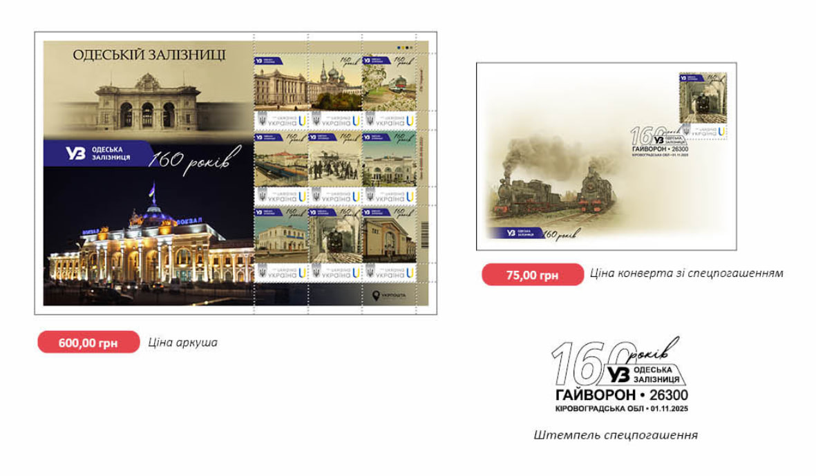 "Укрпошта" з нагоди Дня залізничника та до 160-річчя Одеської залізниці випустила тематичні поштові блоки.