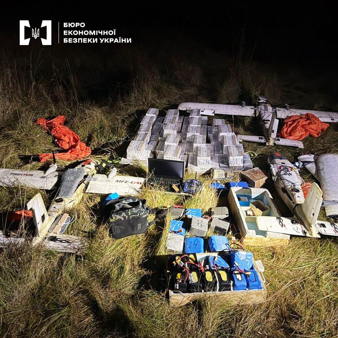 На місці події правоохоронці вилучили сигарети, 23 акумулятори для БпЛА, ноутбук, пульт керування, флеш-накопичувачі з GPS-маршрутами та інше обладнання, що використовувалося для організації контрабанди.