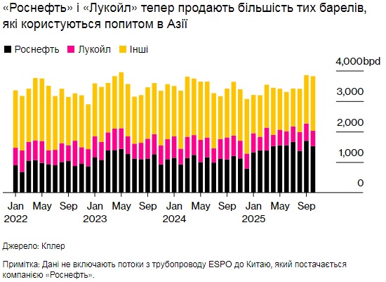 Втім, не вся ця нафта гарантовано знайде покупців ‒ навіть на головних азійських ринках. Китай та Індія залишаються основними імпортерами російської нафти від моменту повномасштабного вторгнення в Україну 2022 року та продовжують співпрацювати з Москвою.