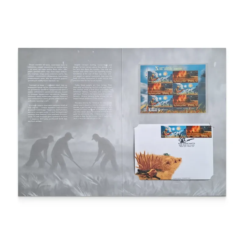"Ця марка присвячена нашим героїчним аграріям – людям, які годують Україну, Збройні Сили України та світ. Людям, які сіють і збирають врожай під дронами, між замінованими полями, які, на жаль, втрачають життя, техніку, друзів – і водночас змушені боротися ще й з не завжди чесною конкуренцією на світовому ринку", – розповів Смілянський.