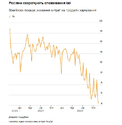 За підрахунками газети "Коммерсант", продажі молока, свинини, гречки та рису у вересні-жовтні знизилися на 8–10%. X5 Group, найбільша російська продуктова мережа, повідомила про зростання виручки в третьому кварталі здебільшого через інфляцію, але чистий прибуток упав майже на 20%, що відображає слабший попит і підвищення витрат.