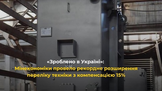 Програма часткової компенсації 15% вартості (без ПДВ) діє з вересня 2024 року в межах політики підтримки вітчизняних виробників "Зроблено в Україні". Вона охоплює обладнання українського виробництва зі ступенем локалізації не менше 40%. Перелік техніки, доступної для придбання з компенсацією, розміщено на сайті Міністерства економіки, довкілля та сільського господарства.