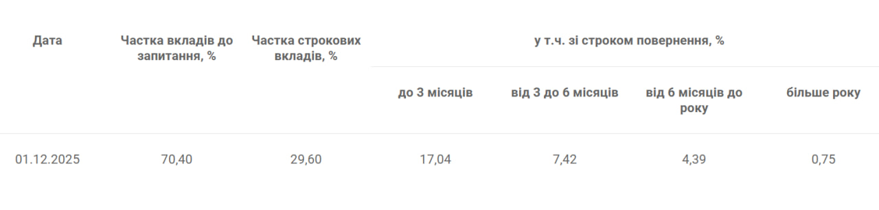 Як ідеться в повідомленні Фонду гарантування вкладів фізичних осіб, із загальної суми вкладів фізичних осіб на 1 грудня 2025 року: