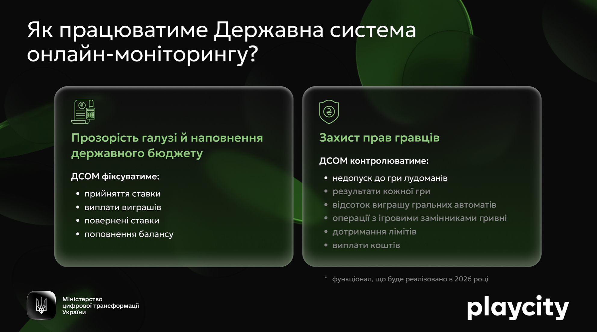 У Мінцифрі наголошують, що поетапне впровадження ДСОМ дозволяє спочатку вибудувати фінансове ядро системи, а згодом розширити її можливості для посилення захисту прав гравців і добросовісної роботи ринку.