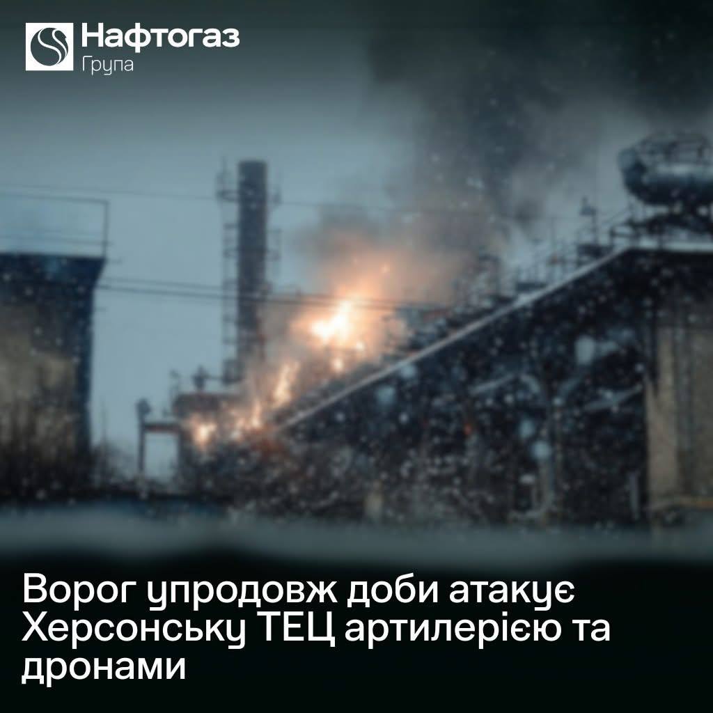 "Упродовж минулої доби росіяни цілеспрямовано обстрілювали Херсонську ТЕЦ – артилерією та дронами. Російські терористи хочуть позбавити можливості відновлення обладнання", – написав керівник компанії.