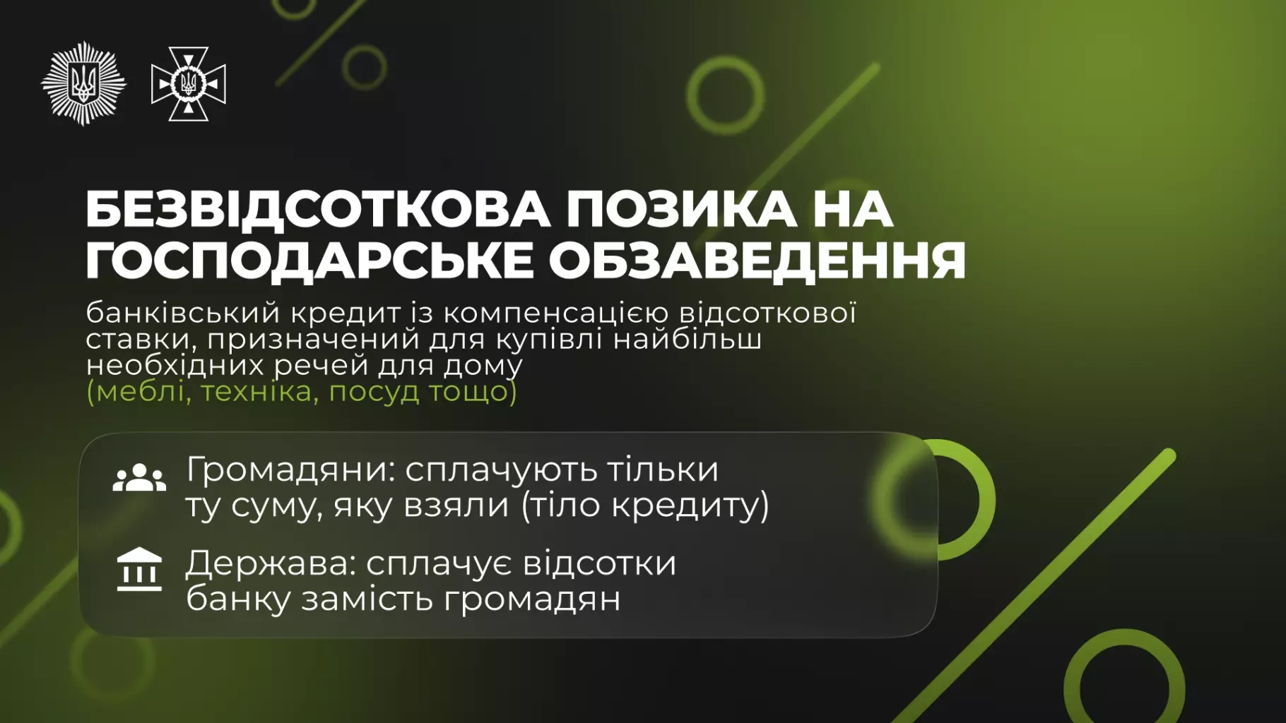 - відсотки банкам компенсуватиме держава, тому для отримувачів позика буде безвідсотковою.