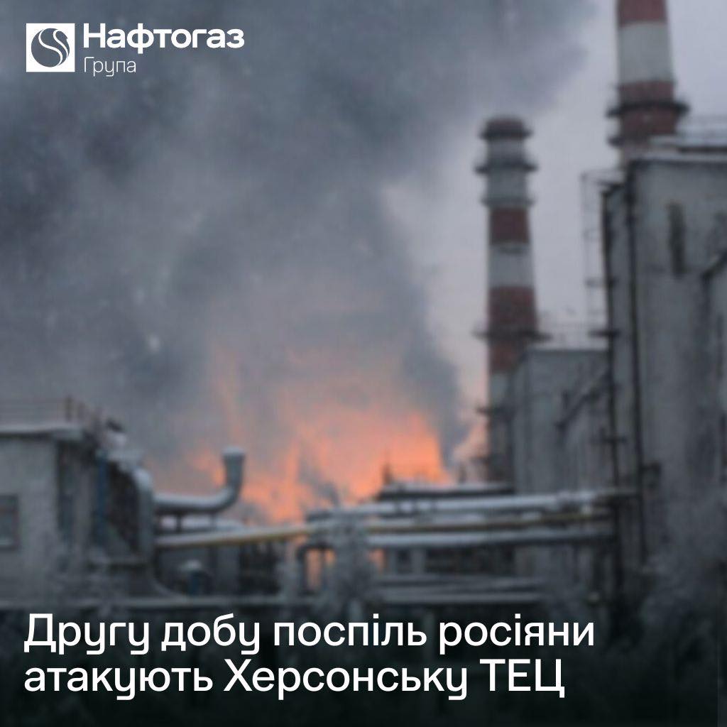 Російські окупаційні війська другий день поспіль завдають ударів по Херсонській ТЕЦ, що входить до складу групи "Нафтогаз".