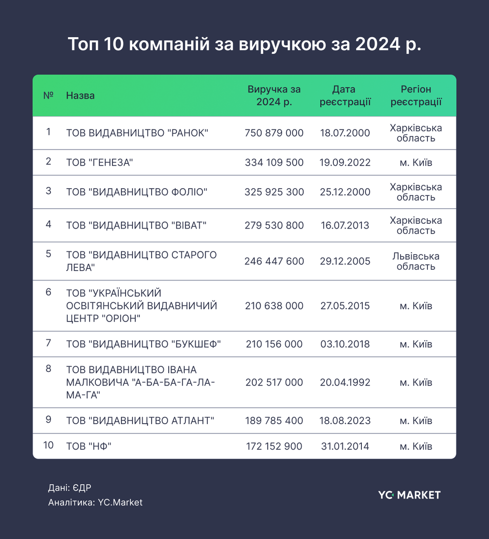 В Україні торік зареєстрували рекордну кількість нових видавництв. ТОП-10 компаній. ІНФОГРАФІКА