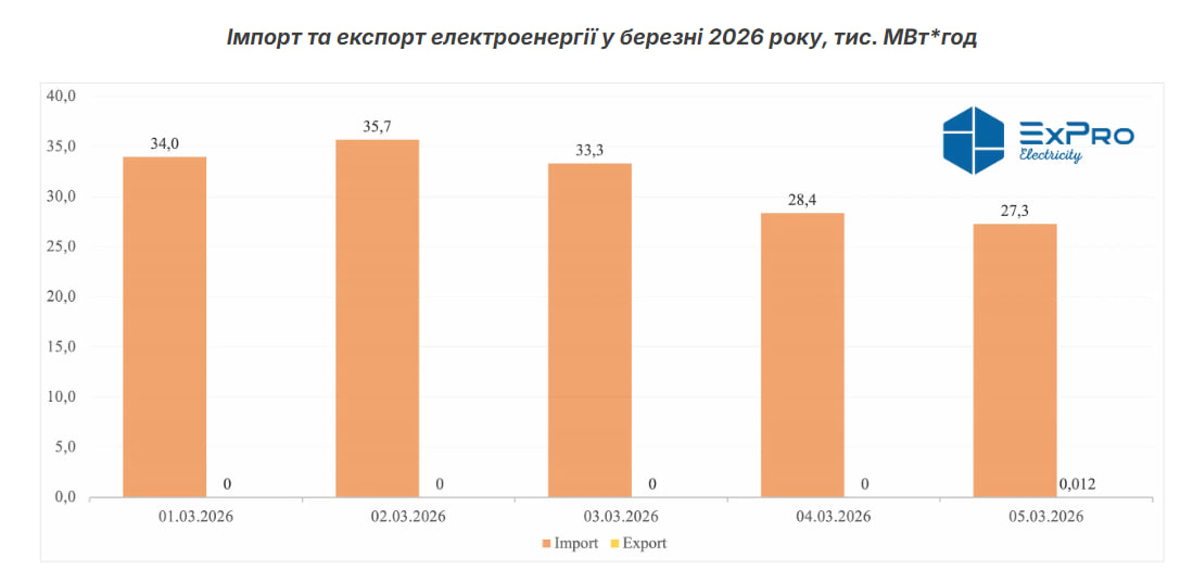 Також повідомляється, що імпорт електроенергії досі залишається на високому рівні – 5 березня його сумарний обсяг за добу склав 27 тис. МВт-год.