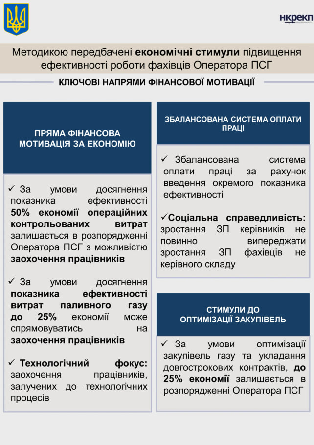 - стимулювання енергоефективності: економія від скорочення виробничо-технологічних витрат природного газу спрямовується на заходи з енергоефективності та розвиток інфраструктури.