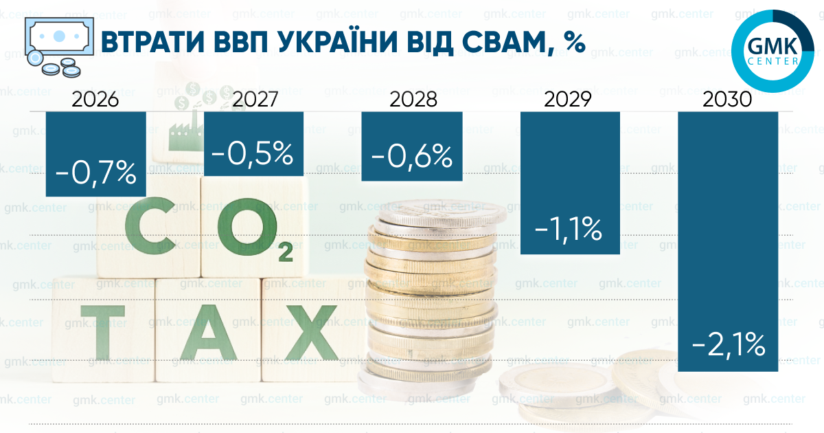 Європейський механізм прикордонного вуглецевого регулювання (CBAM) призведе до суттєвих втрат для української економіки. Падіння ВВП лише внаслідок скорочення експорту заліза і сталі з урахуванням ланцюгів постачання може сягнути 2,1 % до 2030 року. Такий прогноз різко контрастує з оцінкою Європейської комісії, яка прогнозує цей показник на рівні -0,01 % ВВП.