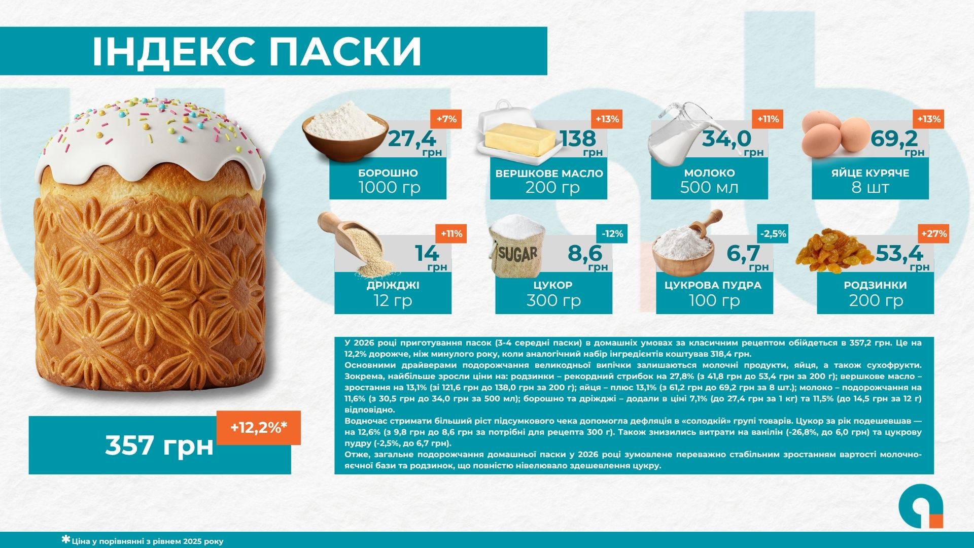 Приготування домашньої паски за рік подорожчало на 12%. Скільки коштує великодній кошик?. ІНФОГРАФІКА
