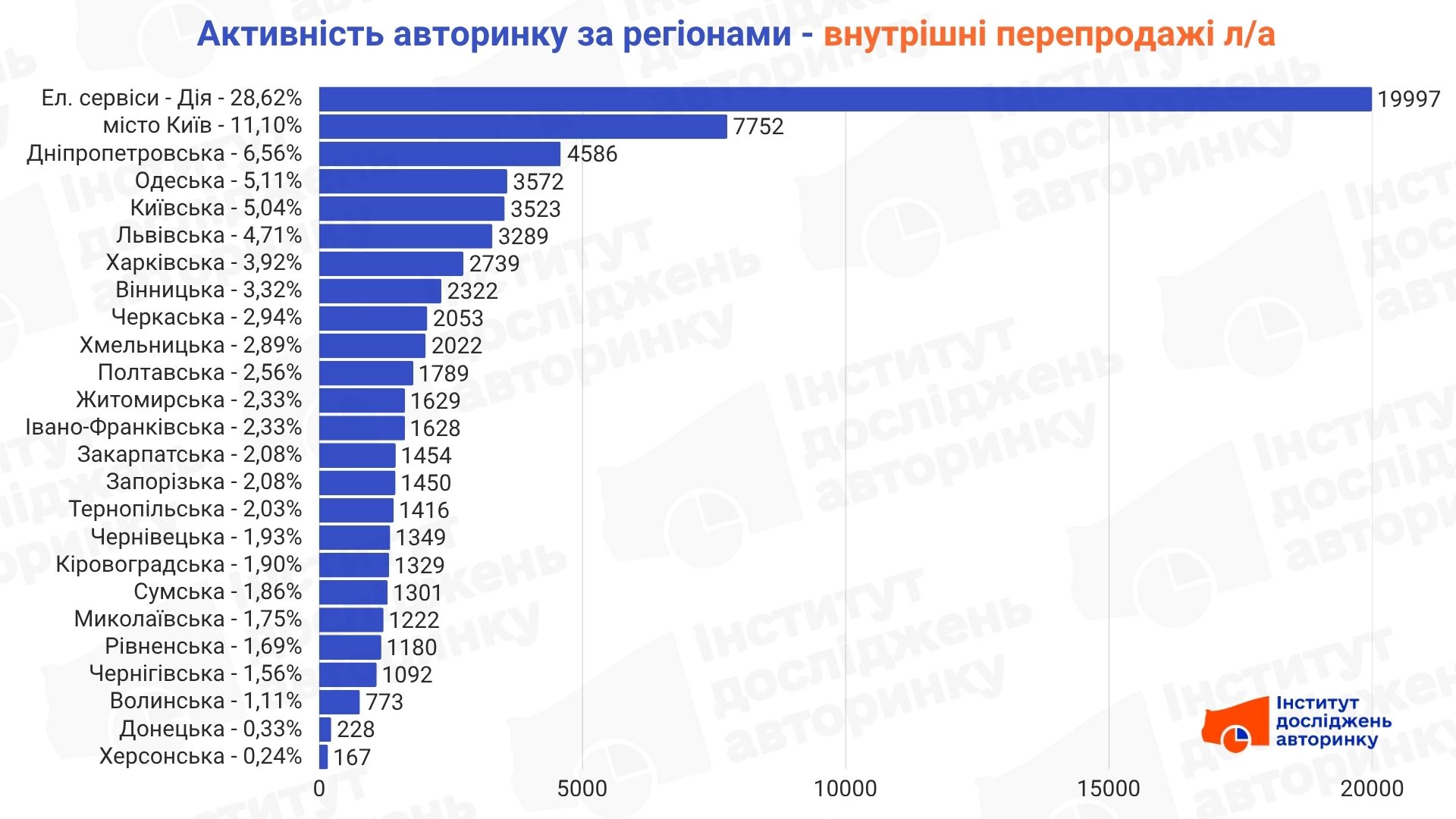 Найбільш помітним трендом внутрішнього ринку є успіх електронних сервісів. Застосунок "Дія" фактично став "віртуальною областю" номер один, акумулювавши майже 28,6% усіх перепродажів всередині країни (19 997 угод).